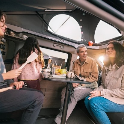 • Holidays offers comfortable travel and sleeps up to four people, with a kitchen, retractable roof, swivelling front seats, and much more.